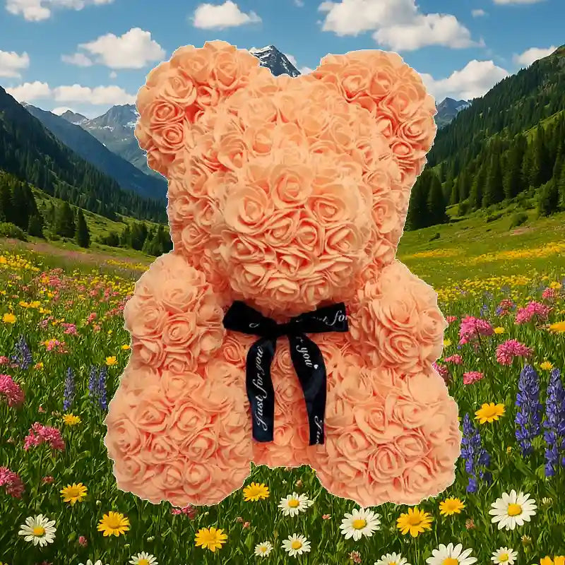 Cet Ours réalisé à partir de roses oranges est un concentré de romantisme et de délicatesse. Il illumineras la pièce dans laquelle il se trouve !