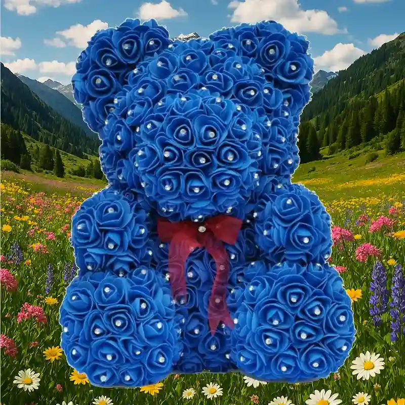 Ce magnifique Ours en Fleurs est le cadeau parfait pour la saint-valentin ! Confectionné à la main avec amour, il est serti de pierres brillantes qui feront fondre le cœur de votre amoureux ou amoureuse !