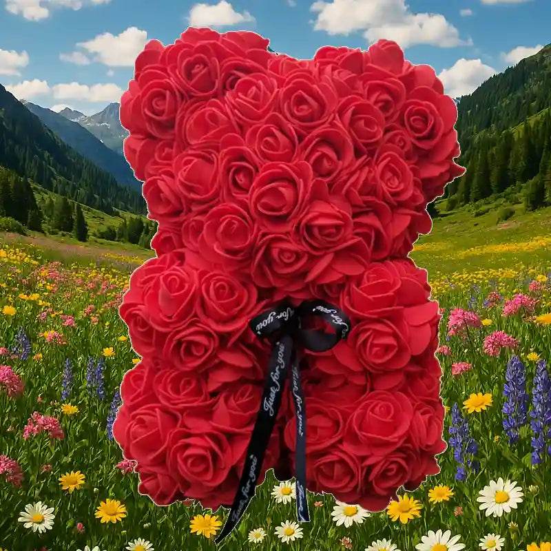 Si vous cherchez un cadeau iconique qui feras craquer son receveur : Vous êtes au bon endroit ! Cet Ourson en Roses Rouges est un concentré de tendresse et de beauté !